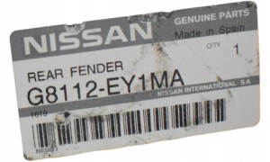 NISSAN QASHQAI 1 +2 BŁOTNIK PRAWA PRAWY TYLNY TYŁ G8115-EY1MA #
